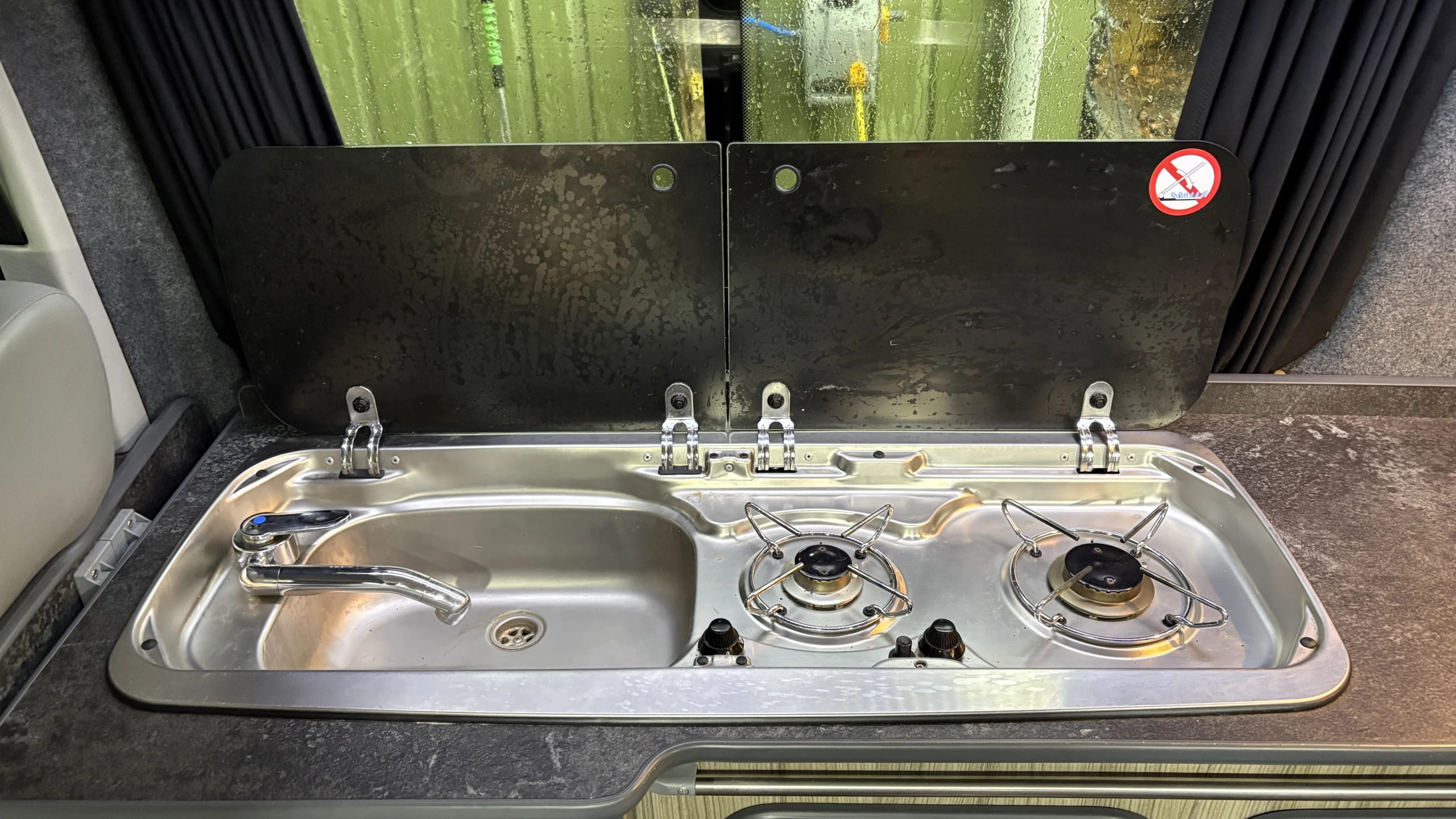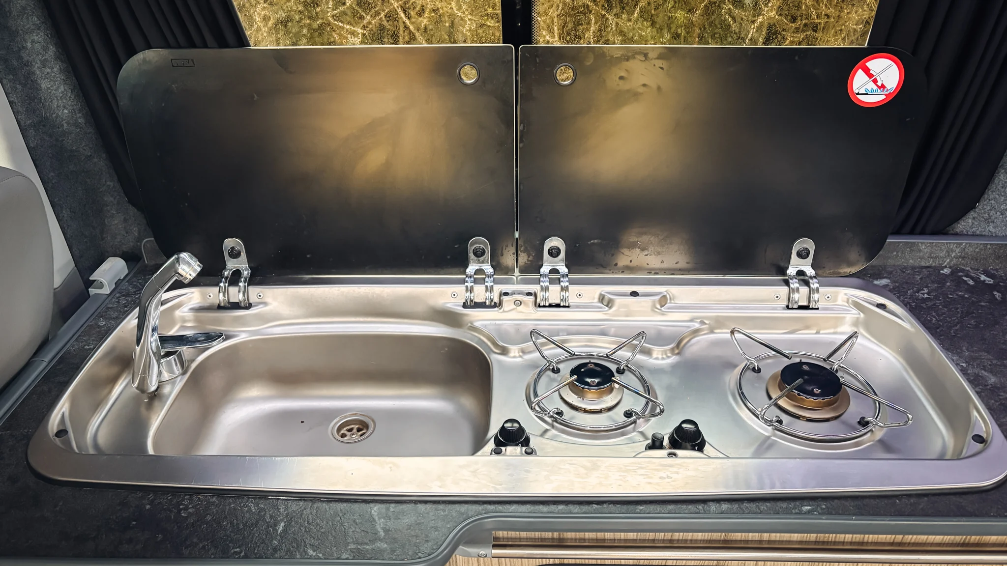 2 gas hobs, sink